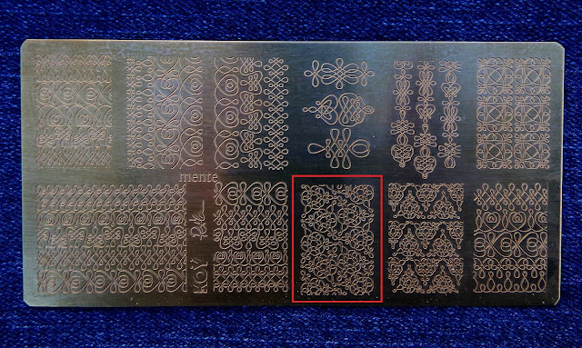 Az inspiráció végül az egyik tavaly festett hímes tojásomtól jött. Az alap indigó-lilás kék lakkom az Avon Matte Inky Blue-ja volt, és erre festettem meg a hagyományos hímes tojás mintát (ami utólag nézve szerintem kicsit zsúfolt lett...) egy fehér Orkide Artist (vékony ecsetű) körömlakkal.